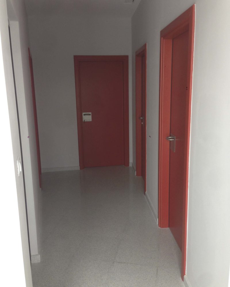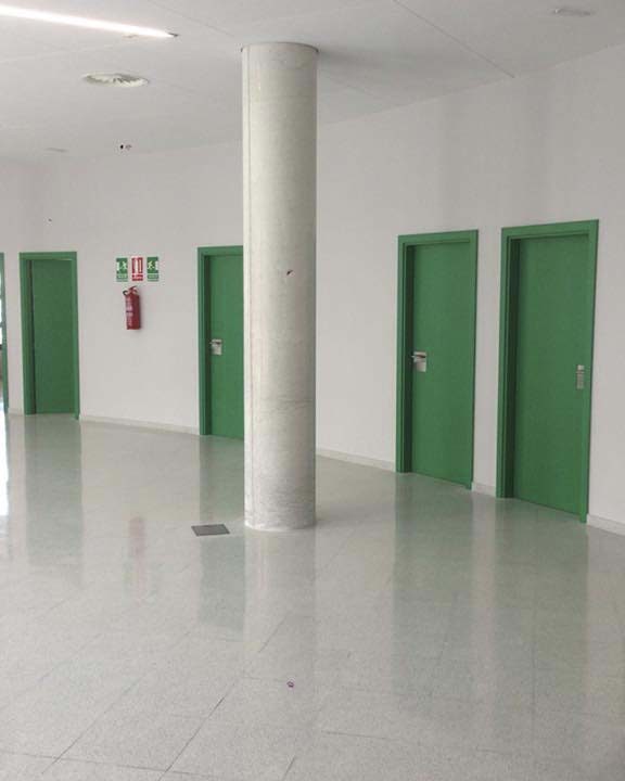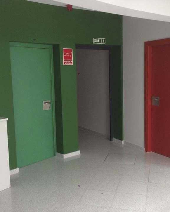 Este proyecto ha sido realizado por la empresa ETOSA OBRAS Y SERVICIOS BUILDING, quien nos ha confiado la carpintería interior, siendo el material principal el laminado HPL (High Pressure Laminates o laminados de alta presión) en varios colores, en verde, rojo y azul para diferenciar lo que alberga cada sala.