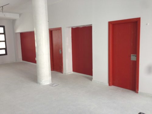 En el interior encontramos diferentes tipos de puertas, según el uso que reciba la estancia, repartidas en oficinas, despachos y baños. Hay varias puertas técnicas acústicas insonoras de 38 dBA, fabricadas según ensayo realizado en laboratorio de acústica “Centro de Física Aplicada C.S.I.C.” y varias puertas técnicas cortafuegos EI60 (60 minutos), fabricadas según ensayo realizado en laboratorio acreditado por E.N.A.C.