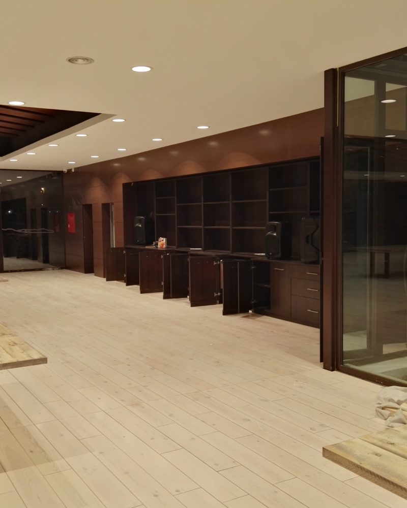 Este proyecto ha sido realizado por la empresa ETOSA OBRAS Y SERVICIOS BUILDING, quien nos ha confiado la carpintería interior y exterior en el que se ha utilizado el wengue natural como principal material.